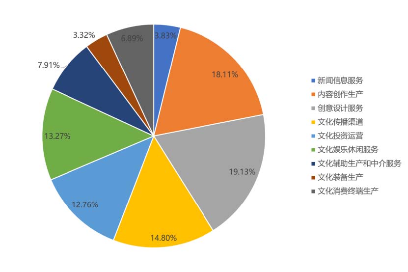 ? ? ??從業(yè)態(tài)來看,文化企業(yè)的業(yè)態(tài)分布較為均衡,內(nèi)容創(chuàng)作生產(chǎn)、創(chuàng)意設(shè)計(jì)服務(wù)、文化傳播渠道、文化投資運(yùn)營、文化娛樂休閑服務(wù)類文化企業(yè)占比都超過10%。